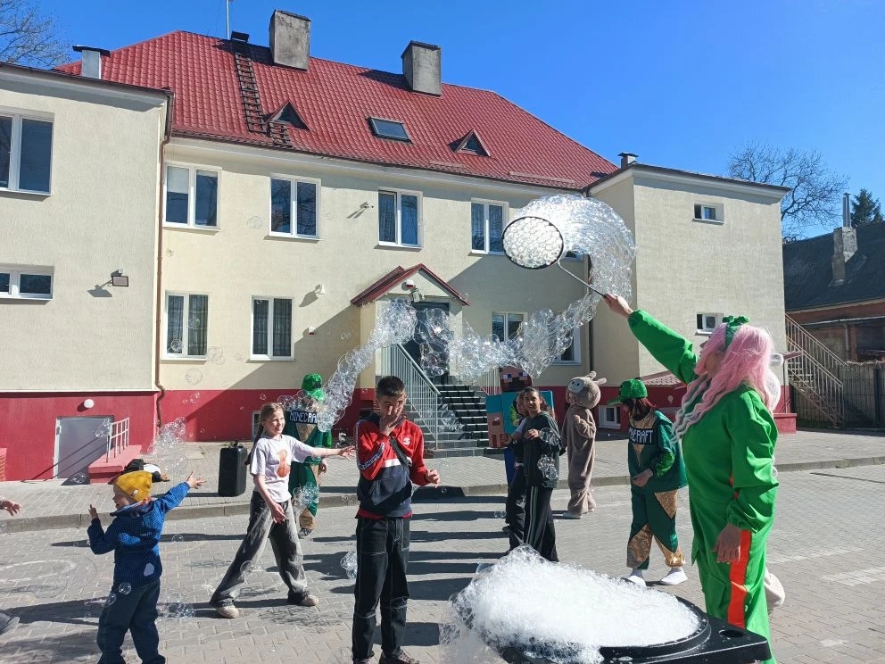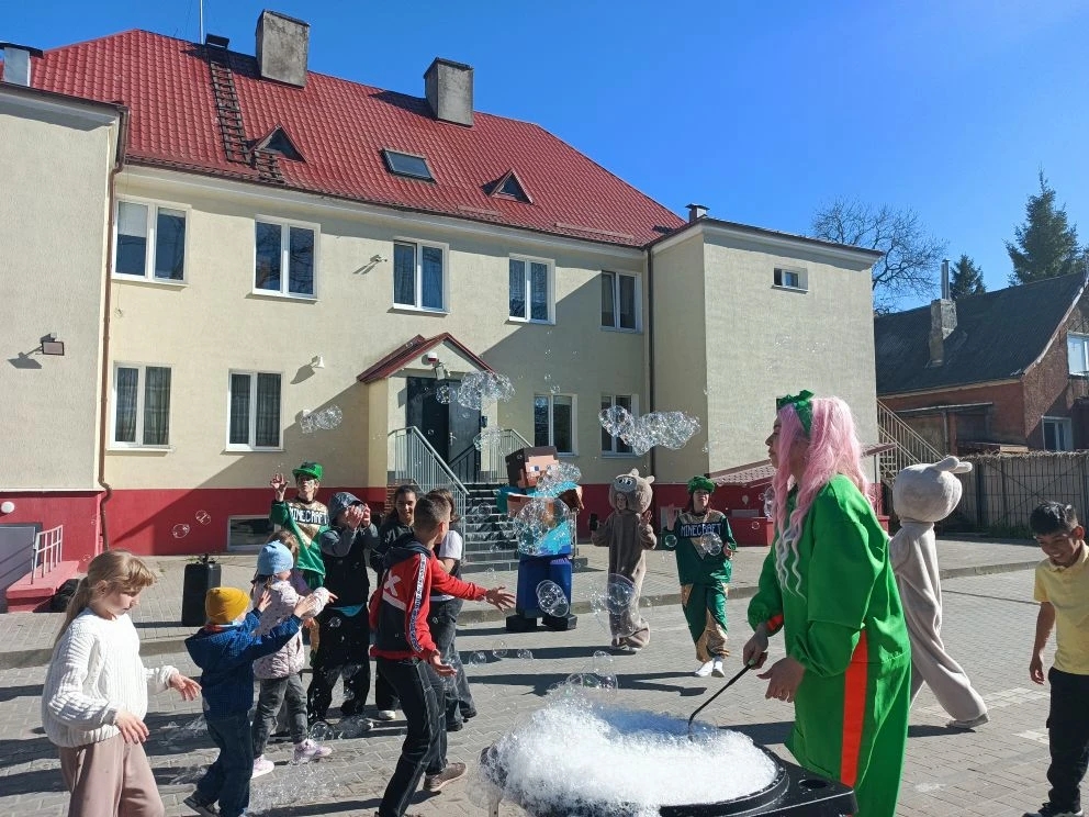 Программа включала выступление аниматоров в образах знаменитых и любимых детьми персонажей, веселые игры, а также завораживающее мыльное шоу!