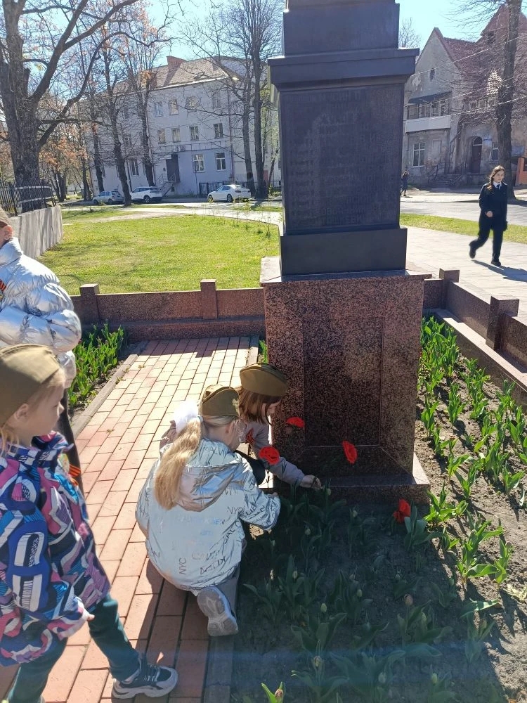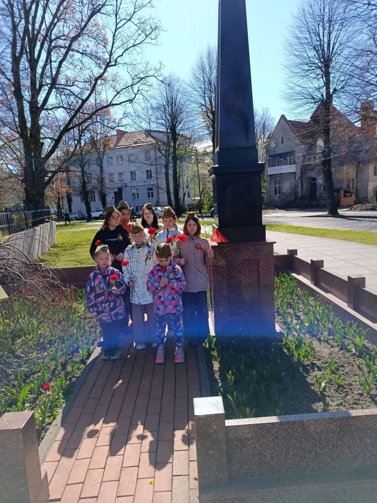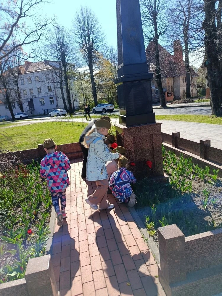 В конце беседы девочки рисовали рисунки на тему ««Дети о Победе», а затем группа отправилась возложить цветы и почтить память героев на Братскую могилу советских воинов, погибших при штурме города-крепости Кёнигсберг в апреле 1945 года, узнали, что здесь захоронено более 40 воинов, а Памятник установлен в 1957 году.